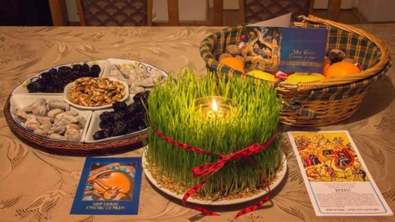 Трпеза на Бадњи дан је искључиво посна и најчешће се спремају риба, пребранац, уз купус или кромпир салату. Средина стола се, традиционално украшава плетеном корпом пуном житарица и сувог воћа.