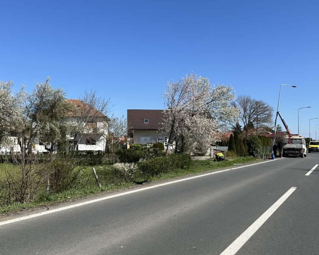 Na deonici puta Bačka Palanka – Novi Sad, kod Čelareva, u toku je zamena tri oštećena stuba rasvete.