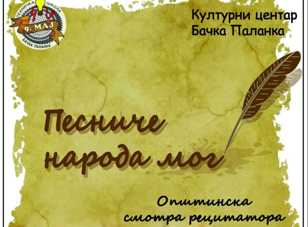 Културни центар Бачка Паланка организатор је Општинске смотре рецитатора, а ове године улогу домаћина препустио је Техничкој школи ,,9. мај” Бачка Паланка. Школа-домаћин ће организовати све сегменте ове манифестације у складу са календаром смотри, почевши од обавештавања школа па до завршног извештаја упућеног организаторима Зонске смотре у Бачу.