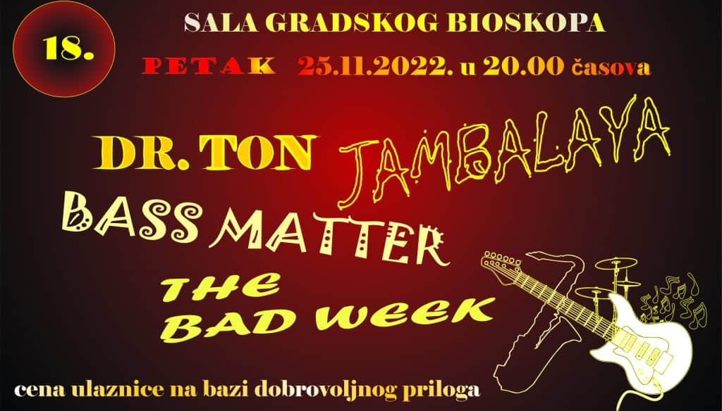 Nastupiće: DR.TON, JAMBALAJA ,BASS MATTER, THE BAD WEEK.