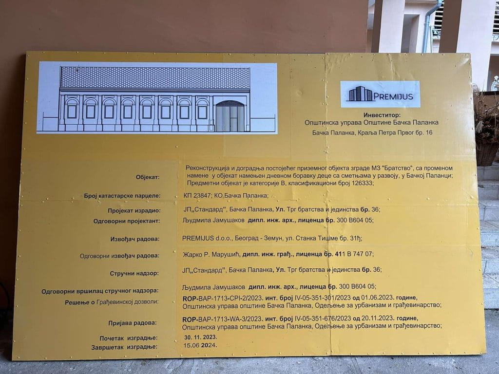U Bačkoj Palanci su počeli radovi na rekonstrukciji i dogradnji objekta MZ “Bratstvo”, koji se nalazi u neposrednoj blizini centra grada, i u kom će 2024. godine biti otvoren Dnevni boravak za decu i mlade sa posebnim potrebama sa teritorije opštine.