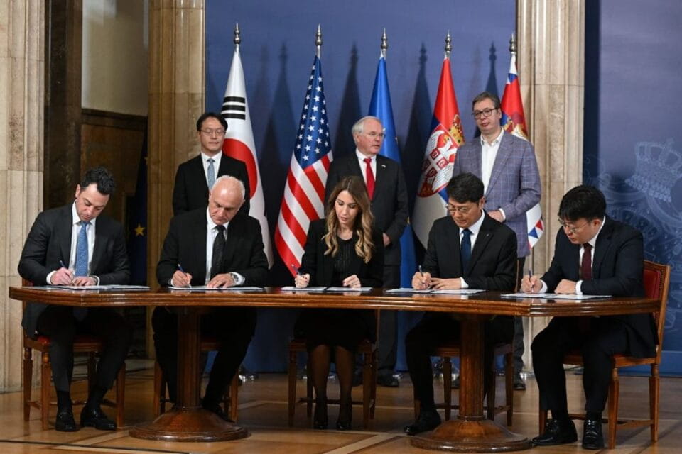 Potpisivanju ugovora, u Predsedništvu Srbije, prisustvovali su ambasador SAD Kristofer Hil i ambasador Republike Koreje Đang Vu Li.