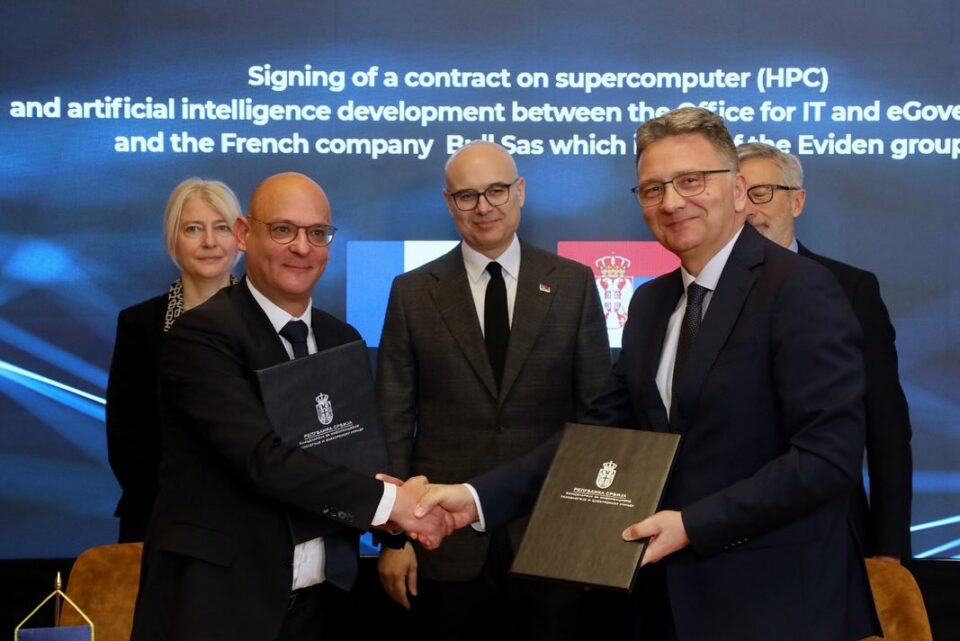 Predsednik Vlade Republike Srbije u tehničkom mandatu Miloš Vučević i ministarka nauke, tehnološkog razvoja i inovacija Jelena Begović prisustvovali su danas potpisivanju Ugovora o HPC (superkompjuter) i razvoju veštačke inteligencije između Kancelarije za IT i eUpravu Vlade Srbije i francuske kompanije Bull SAS (deo Eviden grupe).