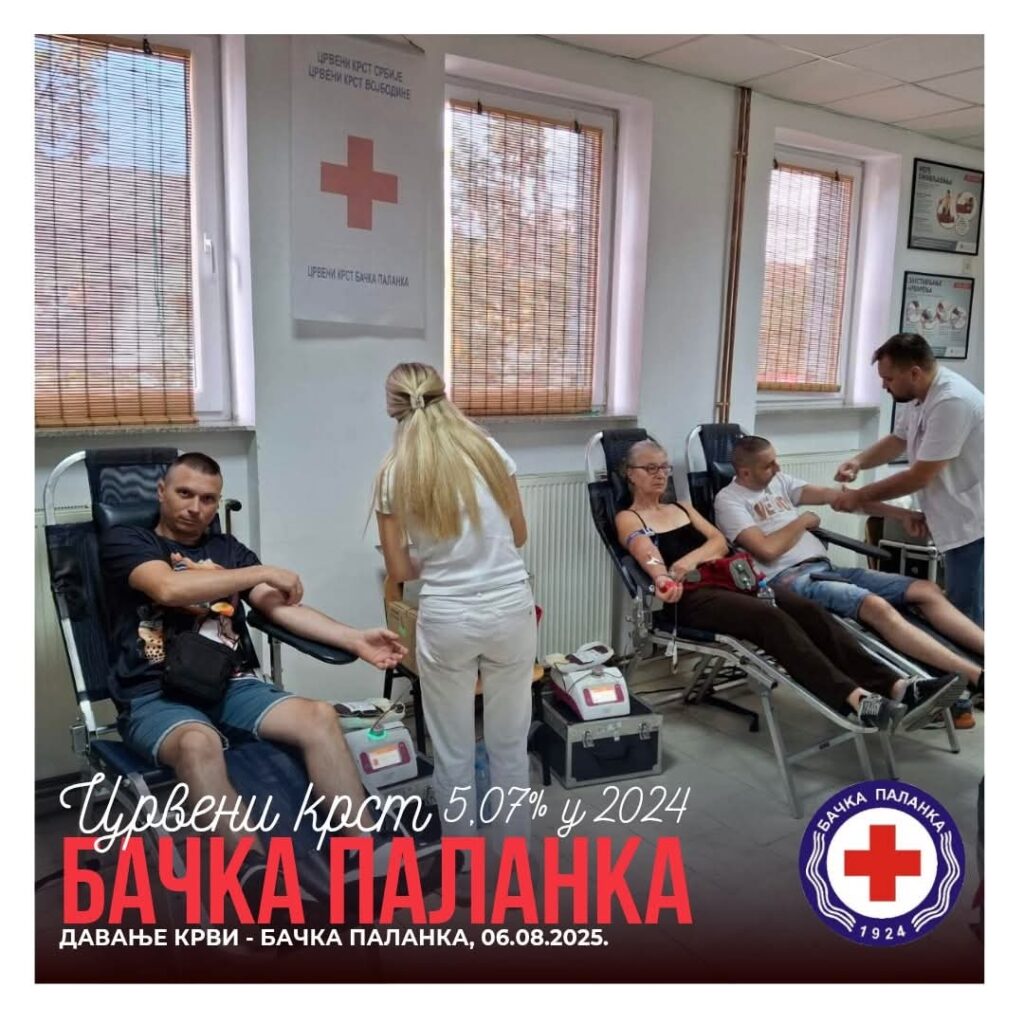 Na današnjoj akciji dobrovoljnog davanja krvi u Bačkoj Palanci svoju humanost pokazala su 124 sugrađanina. Njih 108 moglo je dati krv, dok je 16 odbijeno iz medicinskih razloga.