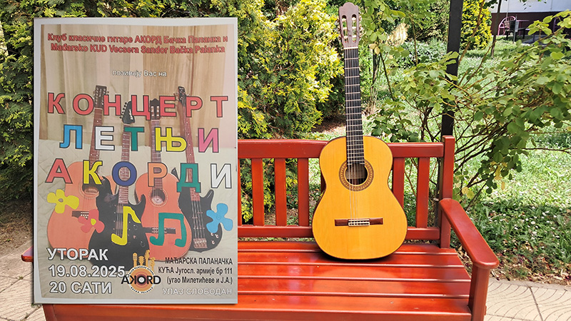 Večeras, 19. avgusta, u 20 časova u prostoru Mađarske kuće u Bačkoj Palanci, biće održan koncert pod nazivom „Letnji akordi“, u organizaciji Kluba klasične gitare Akord. Ulaz za posetioce je slobodan. Na sceni će se predstaviti brojni muzičari i umetnici: pesnik i kantautor Goran Jović, multiinstrumentalista Ryan Donohue, vokal i flauta Marijana Melodija, gitaristkinja Jelena […]