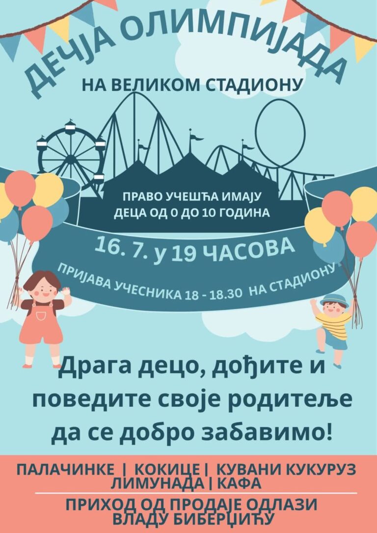 Dečija olimpijada će biti humanitarnog karaktera i sav prihod od prodaje palačinaka, kokica, kuvanih kukuruza, limunade i kafe biće preusmeren