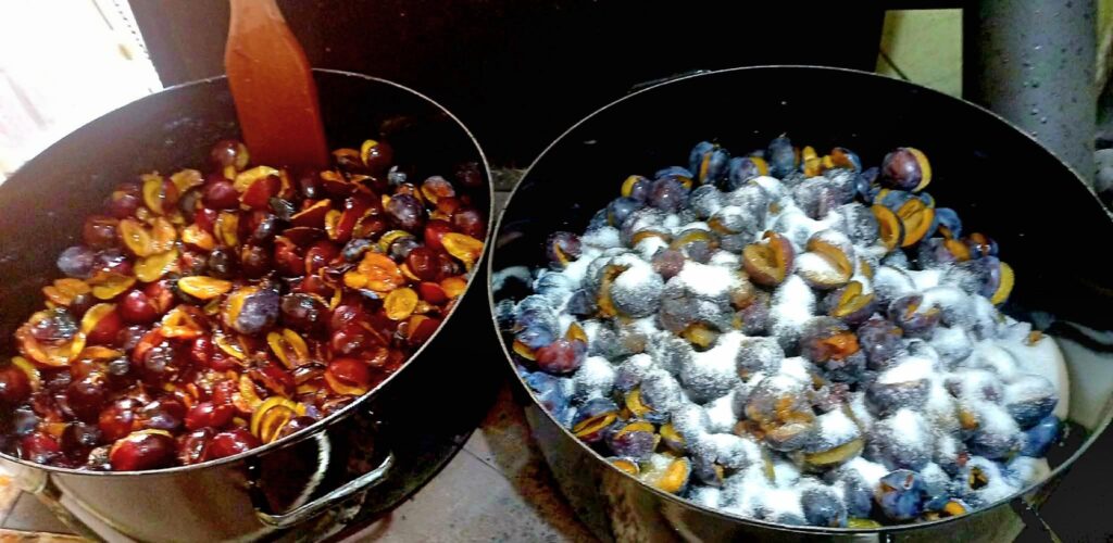 • Sve šljive i šećer kuvaj uz povremeno mešanje.