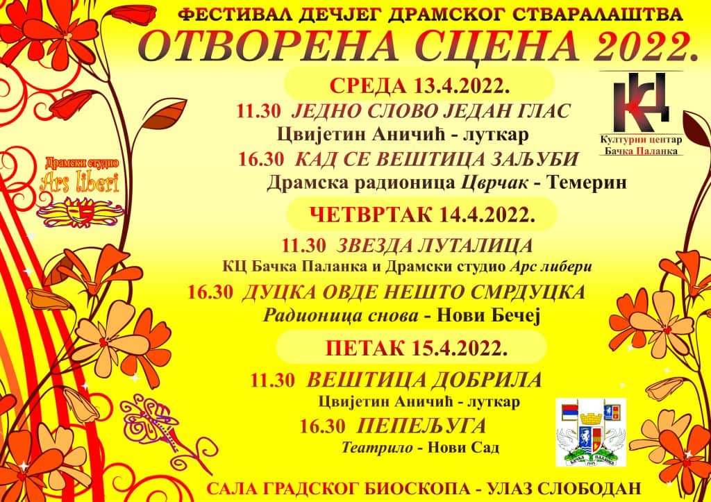 У Градском биоскопу од 13. до 15. априла биће одржан Фестивал дечјег драмског стваралаштва „Отворена сцена 2022.“