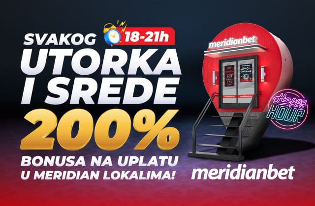 Ali, to nije sve – čeka te i “brdo” bonusa za sportsko klađenje, kao i za slot igre u Meridianu! Svakog utorka i srede, do kraja marta, aktivna je promocija “Happy hour”, u periodu od 18 do 21 čas tokom koje te čeka 100% slot i 100% sport bonusa!