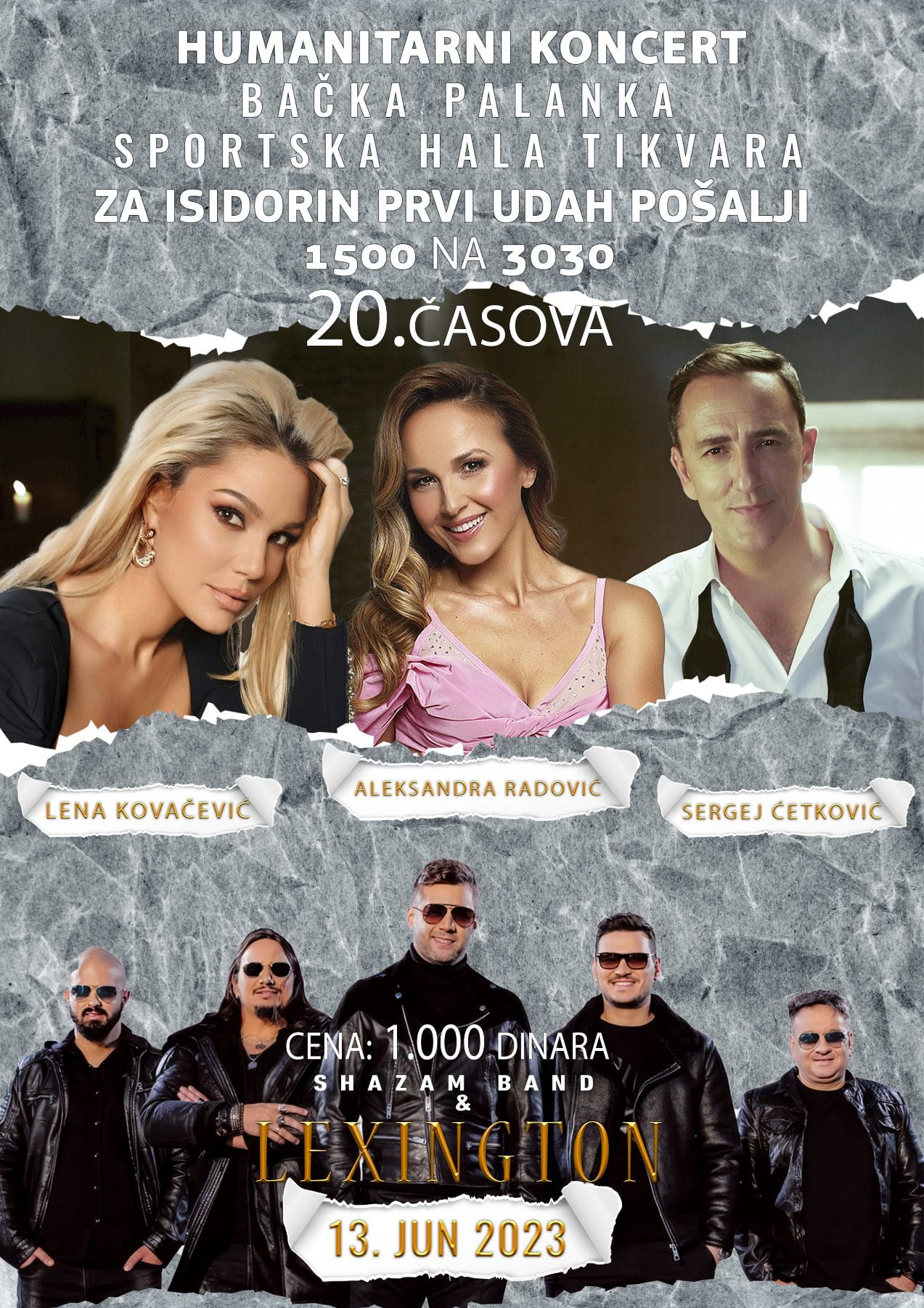 Veliki humanitarni koncert Za Isidorin prvi udah u utorak 13. juna .