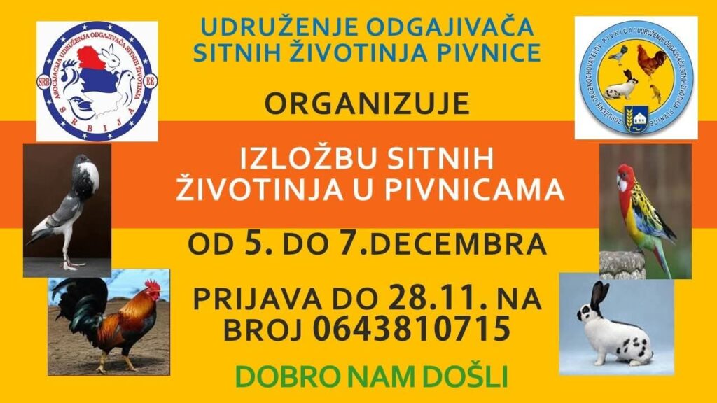 Udruženje odgajivača sitnih životinja Pivnice organizuje izložbu sitnih životinja u Pivnicama od 5 do 7 decembra.