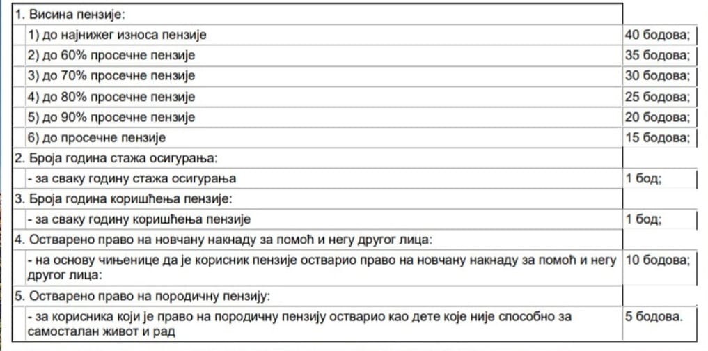 U skladu sa Pravilnikom o društvenom standardu korisnika penzija RF PIO, rang-lista se utvrđuje prema broju bodova, na osnovu sledećih kriterijuma: visina penzije, broj godina staža osiguranja, broj godina korišćenja penzije, ostvareno pravo na novčanu naknadu za pomoć i negu drugog lica, ostvareno pravo na porodičnu penziju za korisnika koji je pravo ostvario kao dete koje nije sposobno za samostalan život i rad. Pod jednakim uslovima za upućivanje na rehabilitaciju, prednost ima korisnik penzije koji je stariji.