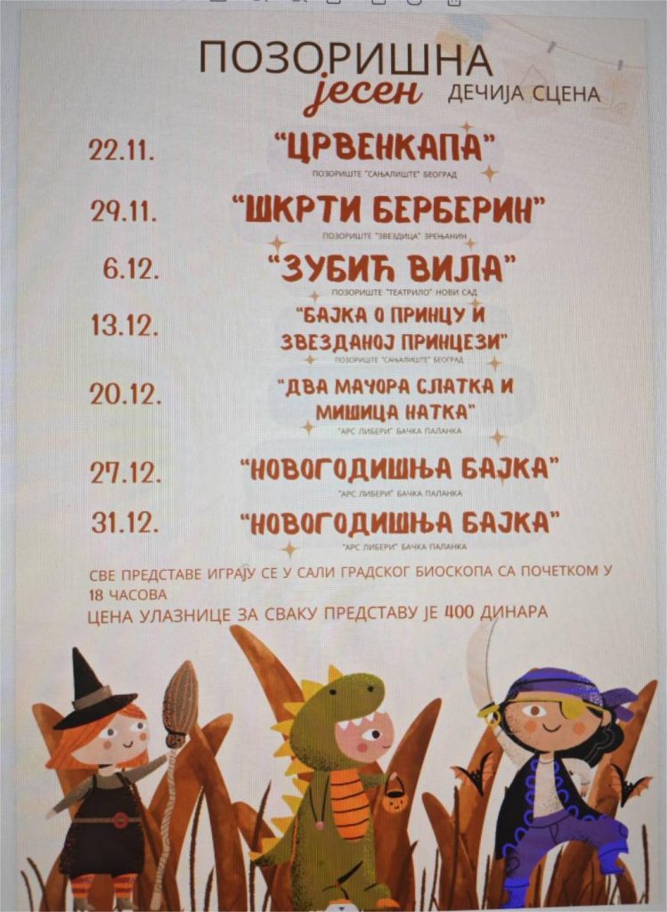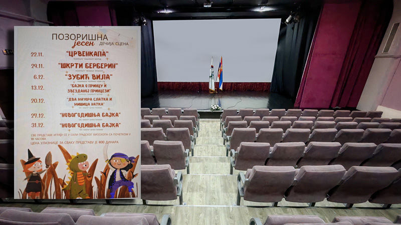 U Gradskom bioskopu, od 22. novembra do 31. decembra biće odigrane predstave za decu u okviru manifestacije „Pozorišna jesen – dečija scena“.