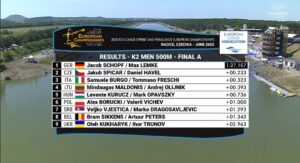 Marko Dragosavljević i Veljko Vještica zauzeli su sedmo mesto u A finalu discipline K2 500 metara na Evropskom prvenstvu koje se održava u Račicama, Češka.