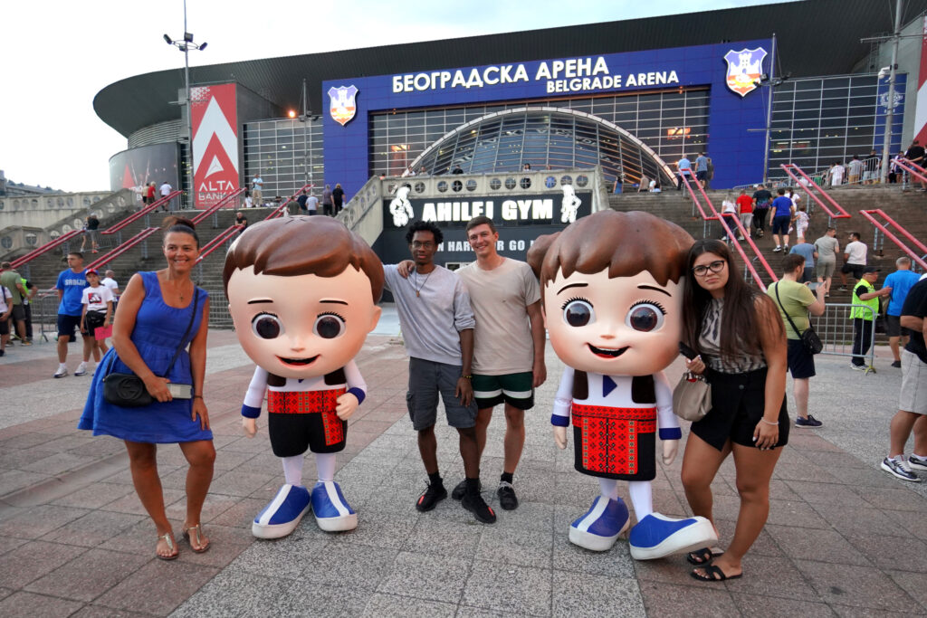 Put ih je zatim odveo na Beogradski aerodrom, simbol budućeg okupljanja posetilaca iz svih krajeva sveta koji će 2027. doći u srpsku prestonicu Sa „bording kartom“ na kojoj je stajalo odredište „Ekspo 2027“, maskote su poželele dobrodošlicu brojnim putnicima i pozvale ih da se već 2027. vrate u srpsku prestonicu. Razigrana šetnja nastavljena je kroz Kalemegdan i Beo Zoo Vrt, na radost najmlađih posetilaca, a završena u Beogradu na vodi, kada su se maskote ridružile jednom od najvećih sportskih događaja u regionu, međunarodnom padel turniru sa više od 100 igrača iz više od 20 zemalja. Tamo su pokazale da su spremne za svaki sportski izazov, dokazujući da je igra univerzalni jezik koji spaja ljude bez granica.