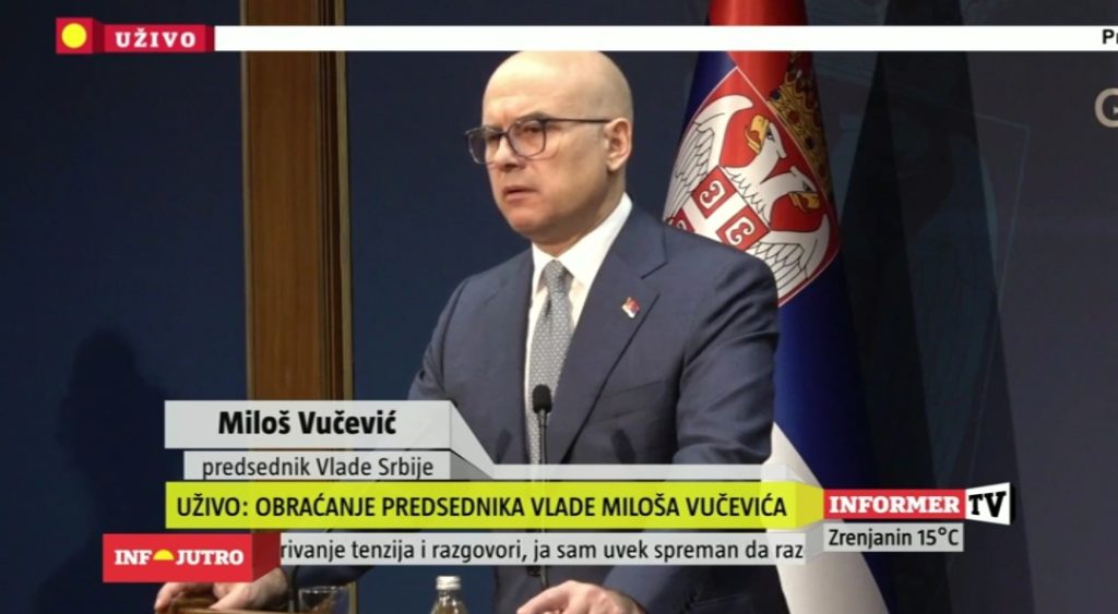 Neko ko je to smislio, a slobodan sam sada da kažem, apsolutno je smišljeno iz inostranstva, u to nemam nikakvu sumnju, udario je na najosetljiviju oblast jednog društva, a to je obrazovanje dece. Podlo smišljeno s ciljem da nam direktno ugroze Srbiju kao državu. I naravno, sve ono što se posle toga ili u tom periodu dešavalo, protesti, blokade, rasprave, svađe na ulicama“, rekao je Vučević.