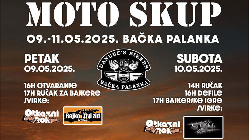Ljubitelji motora, dobre svirke i druženja imaju razlog za radost – od 9. do 11. maja 2025. godine, u Bačkoj Palanci, na lokaciji jezera Bager, biće održan tradicionalni Moto skup u organizaciji MK Danube’s Bikers.