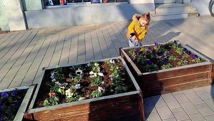 Ova divna fotografija prikazuje dečaka koji pažljivo zaliva cveće u žardinjerama u centru Bačke Palanke.