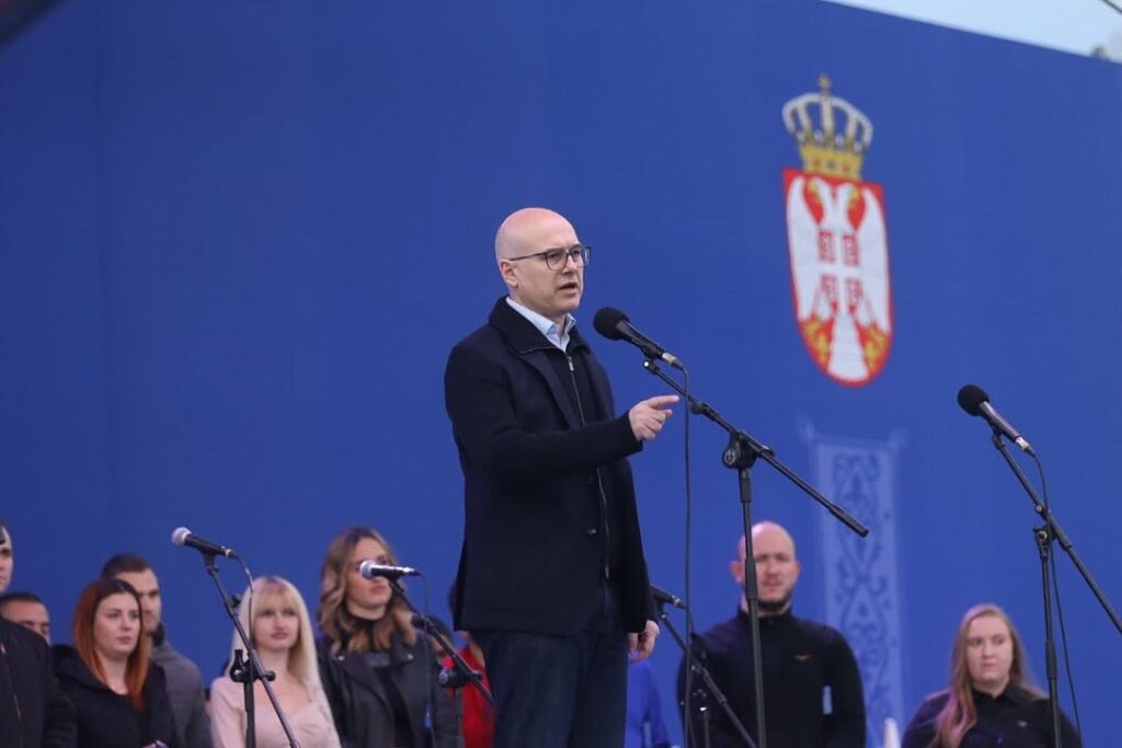 Vučević je naglasio da je ponosan na sve što je danas video na ulicama Beograda na, kako kaže, junake sa stradalnog AP Kosova i Metohije koji su pešačili od Raške do Beograda, jer im Aljbin Kurti nije dao da krenu sa AP KiM, na njegove zemljake sa severa, na srpske paore, na divne studente koji traže samo jedno, a to je da studiraju.