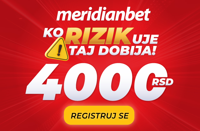Ako voliš dobru zabavu REGISTRUJ SE U MERIDIANU i preuzmi 4.000 DINARA za sport i slot