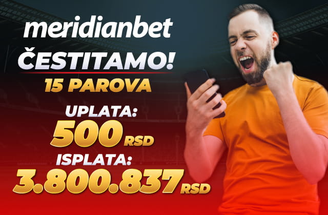 I da – nema potrebe da „trljate“ oči, jer ovaj dobitak je stvaran! Uz fudbalsko znanje i malo sreće u Meridianu je sve moguće, a ukoliko želite da se i vi nađete na listi dobitnika – registrujte se već danas na sajtu meridianbet.rs, preuzmite bonus 4.000 RSD i sastavite pobednički tiket!