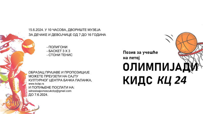 U dvorištu Muzeja grada u subotu 15. juna biće održana OLIMPIJADA KIDS KC 2024. za dečake i devojčice od 7 do 16 godina.