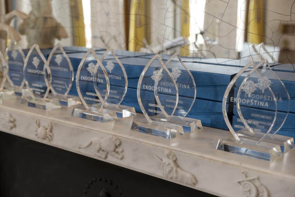Амбасада Француске у Србији и њени партнери Институт Veolia, “Saint-Gobain”, “Veolia”, “Decathlon”, NALED i SKGO, заједнички су доделили награде победницима конкурса „Екоопштина”.