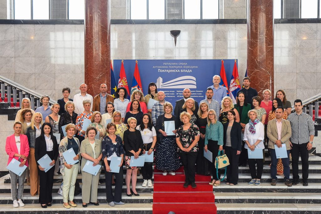 Zamenica pokrajinskog sekretara za obrazovanje, propise, upravu i nacionalne manjine – nacionalne zajednice Slađana Bursać i podsekretar Viktor Pal uručili su danas ugovore vredne pet miliona dinara predstavnicima obrazovno-vaspitnih ustanova, za koja su opredeljena sredstva po novom konkursu za finansiranje i sufinansiranje promovisanja i unapređivanja bezbednosti učenika u osnovnim i srednjim školama na teritoriji AP Vojvodine.