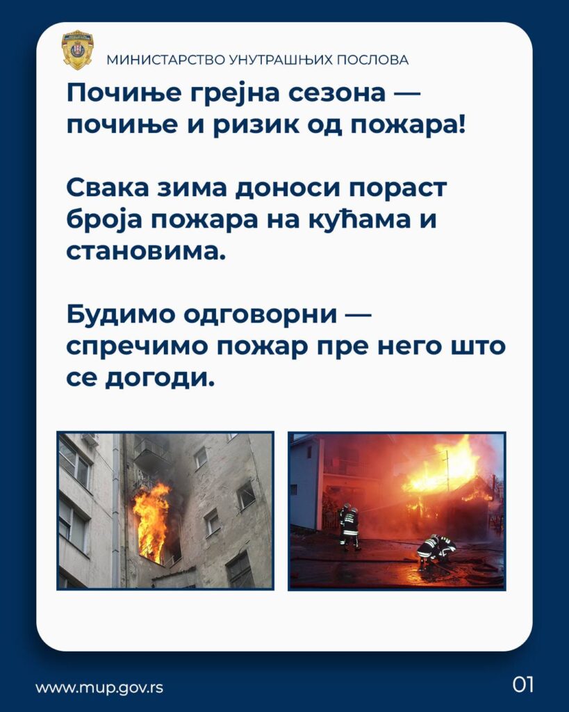 “Vaša bezbednost je na prvom mestu! Većina požara nastaje zbog nepažnje,” ističu u Ministarstvu.