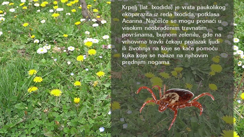 Krpelji se obično nalaze u visokoj travi, grmlju ili šumskim područjima. Ugrizom krpelja može doći do prenosa bolesti ako inficirani krpelj ostane pričvršćen za kožu duži vremenski period.
