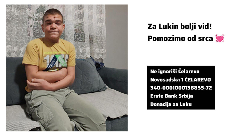 Luka Ćulibrk iz Gajdobre, dečak od 11 godina, ponovo se suočava sa ozbiljnim zdravstvenim izazovom. Nakon što je već imao uspešnu transplantaciju rožnjače, pred njim je nova operacija u klinici „Sveti vid“ koja mora da se obavi do kraja decembra. Luka boluje od retke bolesti – degenerativne rožnjače, a za transplantaciju je neophodno prikupiti još 500.000 dinara.