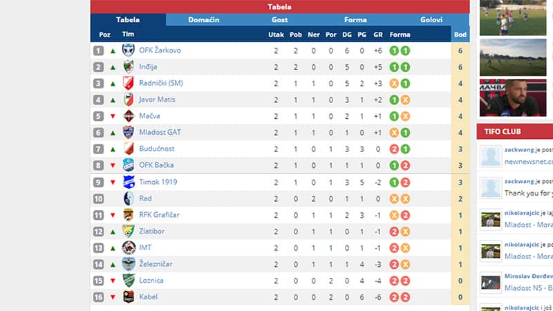 Након 2 одиграна кола ОФK Бачка се са једном победом и једним поразом налази на 8 месту првенствене табеле.