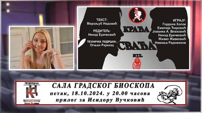 U sali Gradskog bioskopa u petak, 18. oktobra u 20.00 časova biće odigrana pozorišna predstava “Krađa, svađa, itd.”