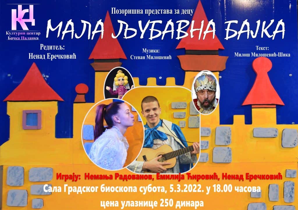 У Градском биоскопу у суботу 5. марта у 18.00 часова биће поново одиграна позоришна представа за децу “Мала љубавна бајка”.