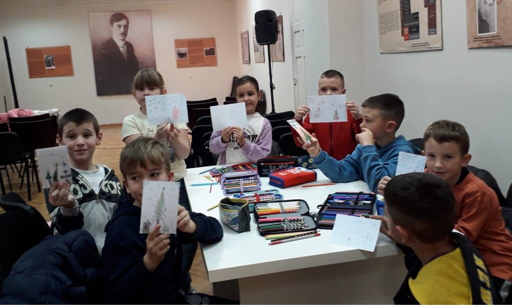 Pozdravivši se sa Goranom i Rajanom, deca su se latila bojica i papira. Crtali su i pisali čestitke namenjene najdražim osobama. Pretpraznična atmosfera je sve obuzela. Na čestitkama su se našle sanke, jelke, Deda Mraz, Sneško Belić, razdragana deca i mnogo ukrasa.