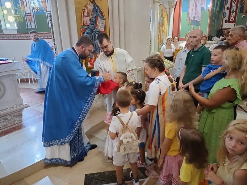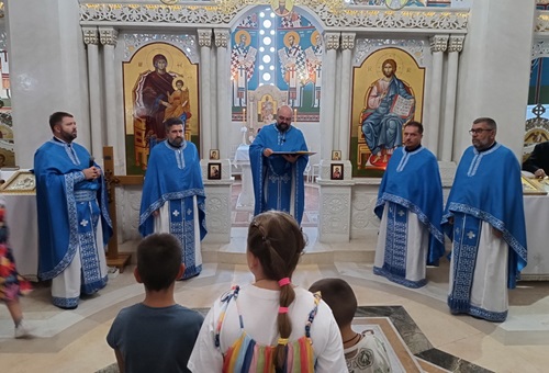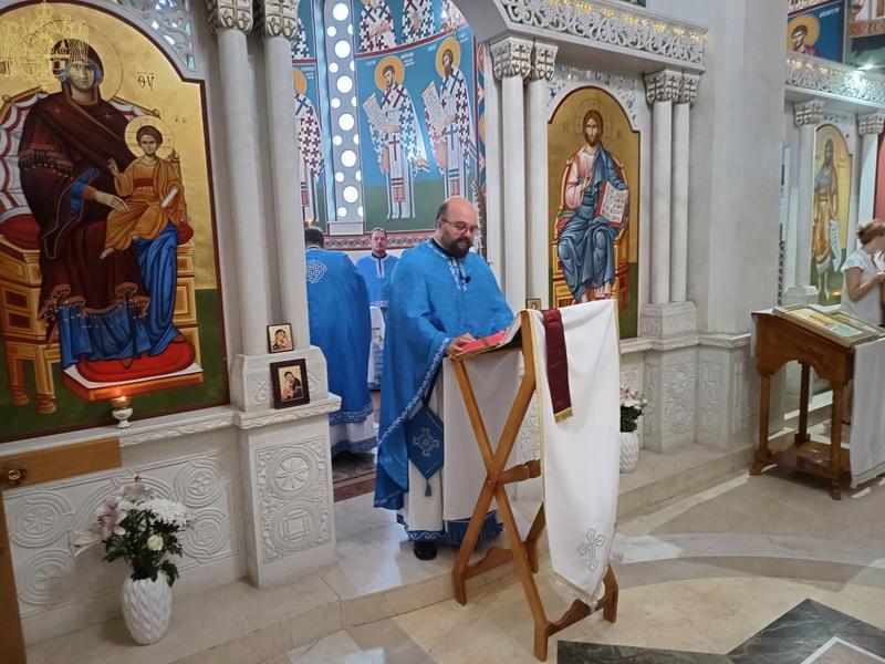 U nedelju, 4/17. avgusta 2025. godine, u hramu Pokrova Presvete Bogorodice u Bačkoj Palanci, svetom Liturgijom je načalstvovao protojerej Branislav Mrkić, arhijerejski namesnik novosadski drugi, uz sasluženje protojerejâ Slavka Protića i Dušana Đukića, paroha bačkopalanačkog, protonamesnikâ Zorana Regodića, paroha bačkopalanačkog, i Novice Rakića, arhijerejskog namesnika bačkopalanačkog. Po pročitanom jevanđelskom odeljku, prota Branislav je proizneo prigodnu besedu.