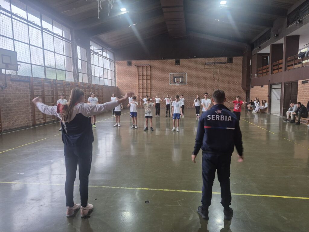 Na časovima fizičkog i zdravstvenog vaspitanja, učenici trećeg razreda priredili su program u kojem su istakli osobine reprezentativaca i otpevali posebnu pesmu, a potom im uručili poklone – brodiće od papira. Sedmi razredi su imali priliku da čuju o različitim kajakaškim disciplinama, treniranju i ishrani, a kajakaši su im pokazali vežbe koje su potom zajedno izvodili.