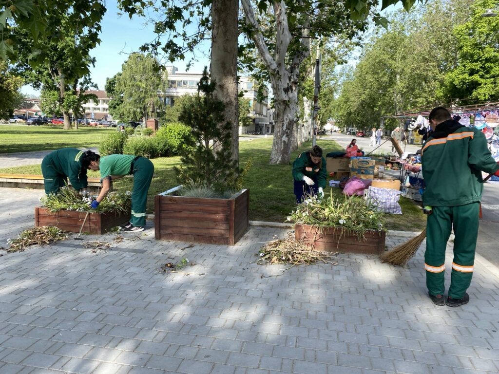 Radnici JKP „Komunalprojekt“ angažovani su na redovnom održavanju zelenih površina u centru grada.