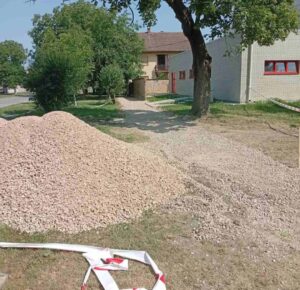 U toku je asfaltiranje prilaznih staza i trotoara ispred sportske sale OŠ “Branko Ćopić” u Mladenovu.