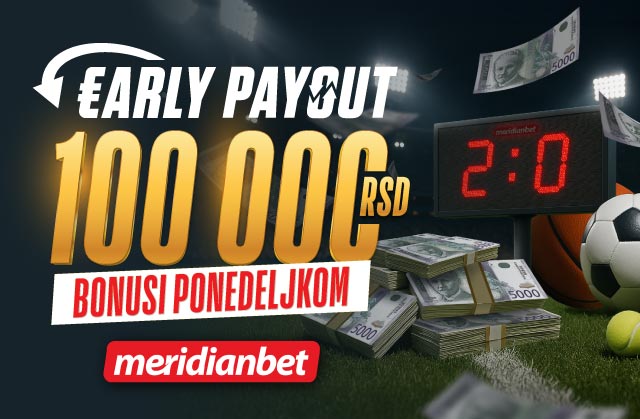 Da li ste spremni za zabavu koja pomera granice? Meridian je u svoju ponudu uvrstio Early Payout opciju koja vam pruža mogućnost isplate i pre nego što meč bude završen.