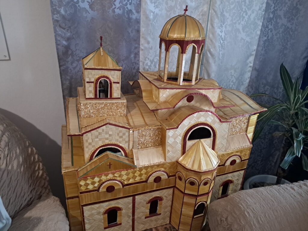 Umetnost od slame ne završava se samo na slikama. Tokom rada, Mirjana je shvatila da ovaj materijal ima još neistraženih mogućnosti – i tako su nastale makete. Crkve, salaši, konjički objekti – sve izrađeno od slame, do najsitnijih detalja. Njene makete nisu samo ukras; one su minijaturna svedočanstva tradicije i duha Vojvodine. Po načinu izrade i tehnici, Mirjana je gotovo jedinstvena na ovim prostorima.