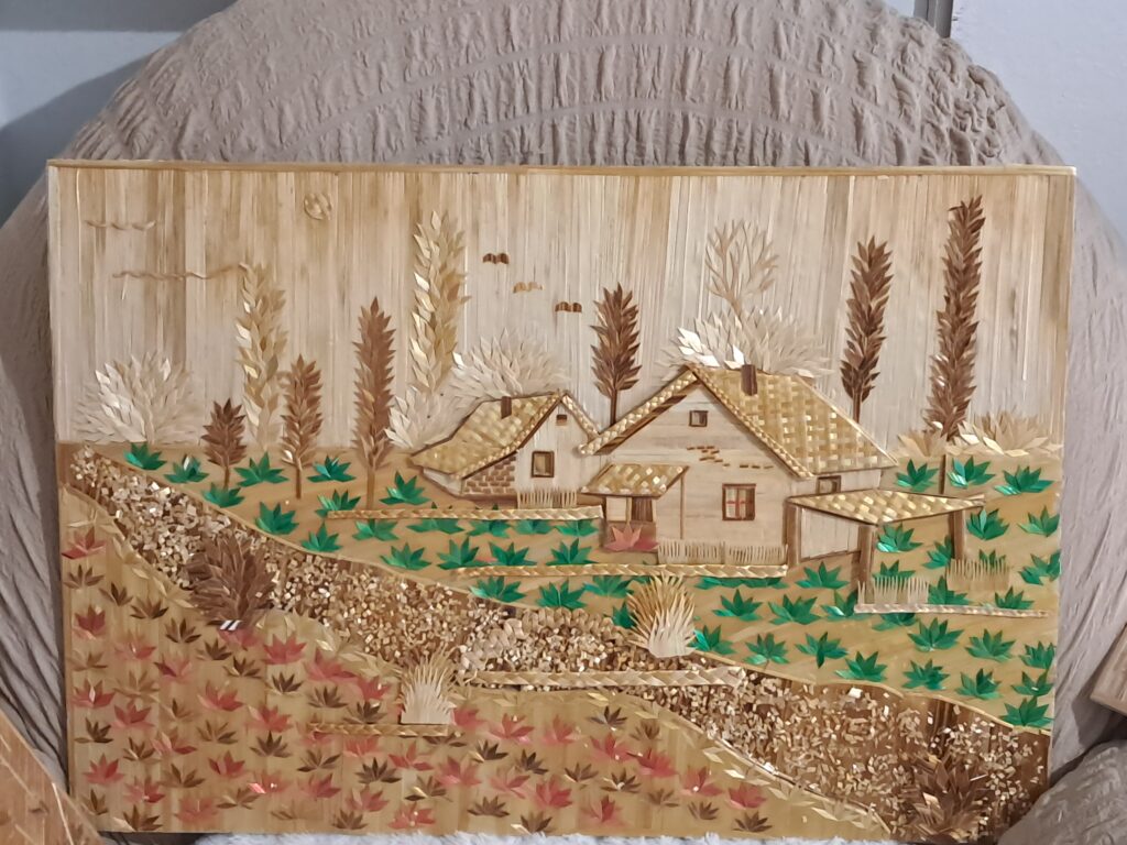 Mirjana je po zanimanju slikarka, ali će vam prva priznati da o svom radu ne voli mnogo da priča. Umesto reči, njena dela govore sve. Njene slike odišu toplinom, pažnjom i preciznošću, a ono što ih izdvaja jeste – materijal. Umesto četkice i boja, Mirjana koristi slamu. I to ne bilo kakvu – svaka slamka pažljivo je odabrana, pripremljena i termički obrađena, dok ne postane deo jedinstvenog mozaika.