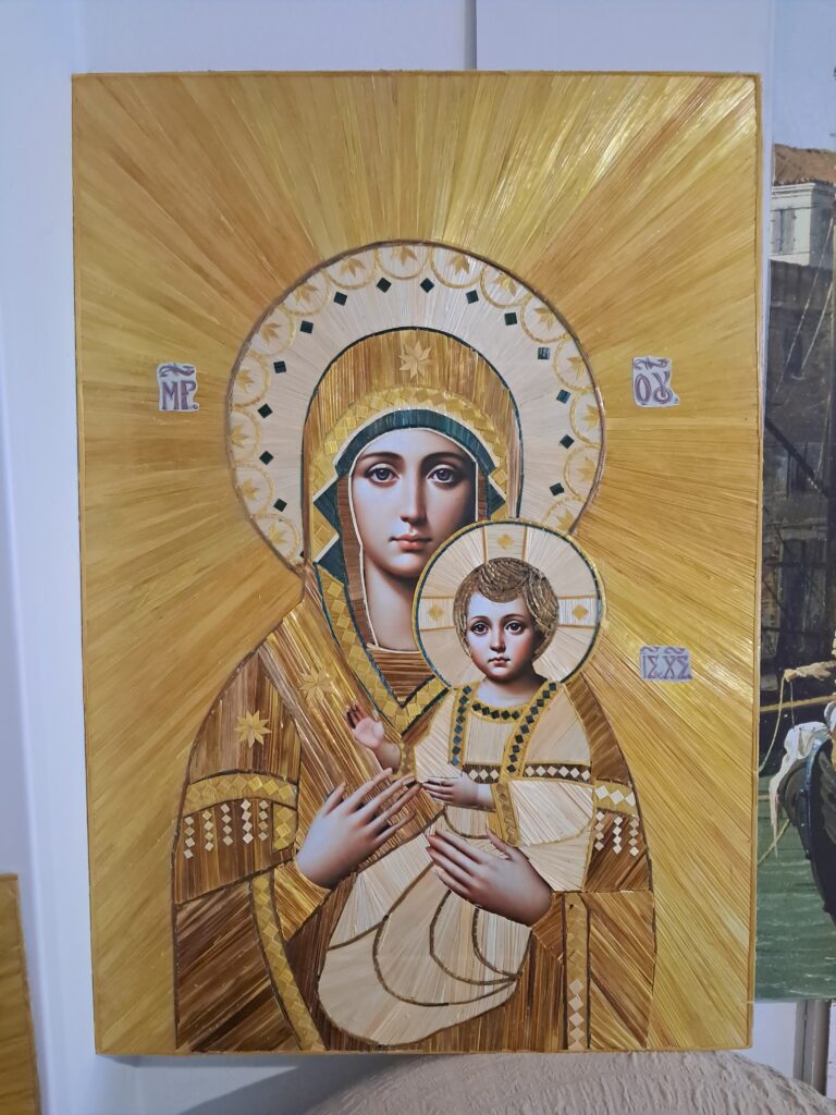 Karađorđevo je mesto poznato po velikim žitnim poljima i ergelama. Ova sredina pruža Mirjani mogućnost da bira najbolje materijale – slamu pšenice, ječma, zobi… Svaka biljka daje drugačiju nijansu, drugačiju teksturu. I upravo te razlike koristi da oslikava pejzaže, seoske motive, prirodu, ali i verske objekte – teme koje je najviše inspirišu.