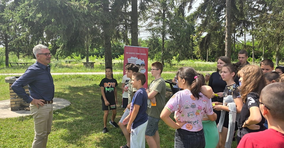 Sekretar Mitrašinović je razgovarao sa decom, volonterima i domaćinima iz Crvenog krsta Bačka Palanka i sam je uvideo koliko deca uživaju u raznim aktivnostima.
