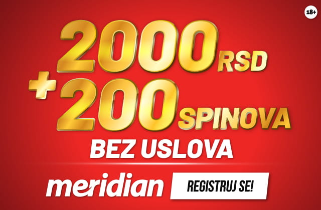 BONUS BEZ KONKURENCIJE: Kreiraj nalog i Meridian te časti sa 2.000 RSD i 200 SPINOVA!