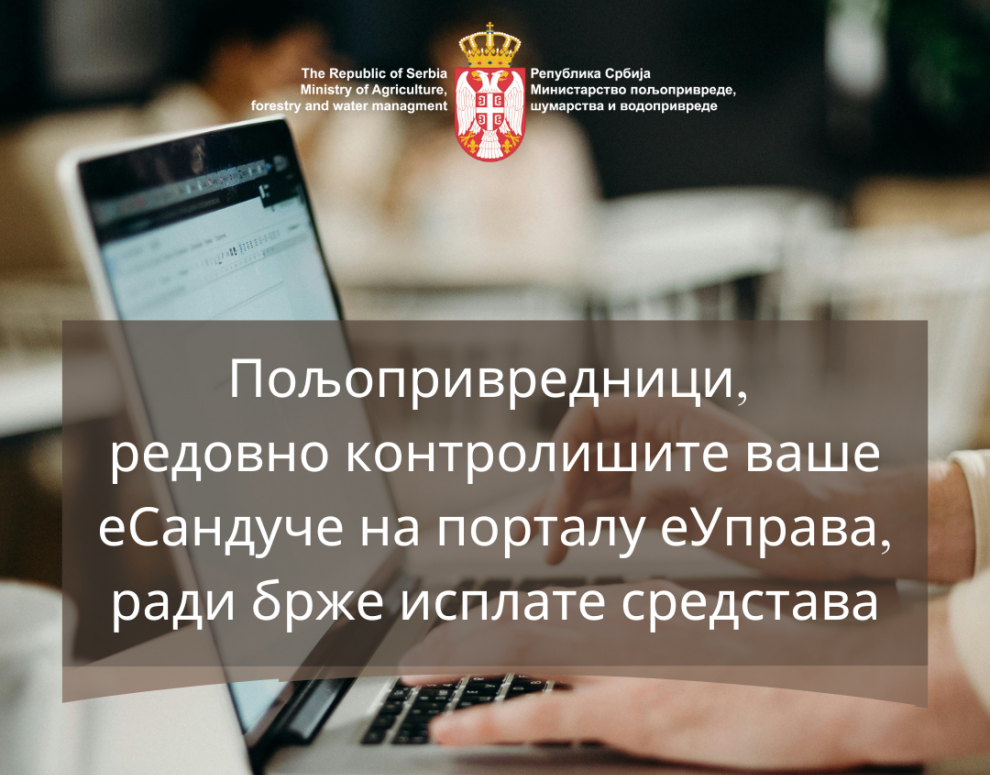 Poljoprivrednici, redovno proveravajte eSanduče radi brže isplate sredstava
