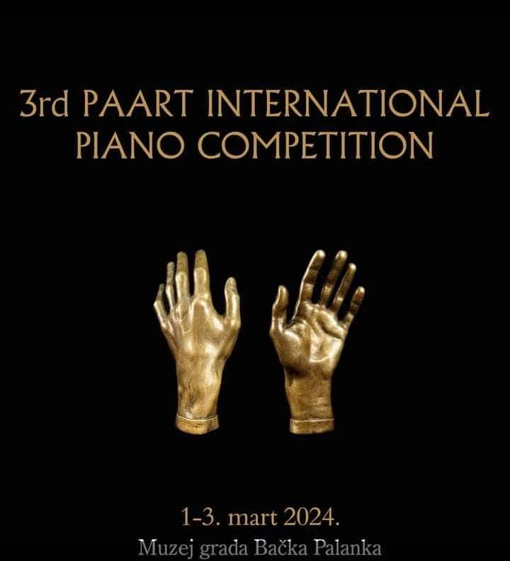 Treće međunarodno pijanističko takmičenje „PAART INTERNATIONAL PIANO COMPETITION“ biće održano 3. marta 2024. godine u Koncertnoj sali Muzeja grada sa početkom u 9.00 časova u organizaciji Ustanove Kulturni centar Bačka Palanka i Centra za kulturnu, obrazovnu i umetničku inicijativu „PaArt“.