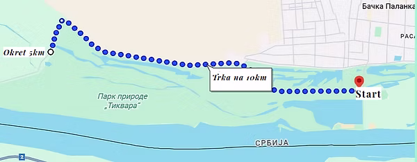 Trči se asfaltnim nasipom jedan krug, sa startom kod dečijeg igrališta, i to 5 km ka Karađorđevu i 5 km nazad.