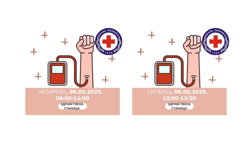 Crveni krst Bačka Palanka organizuje dve akcije dobrovoljnog davanja krvi u četvrtak, 6. februara 2025. godine: