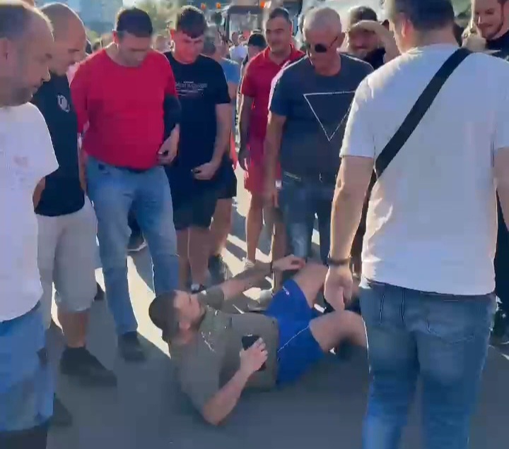 Učesnici protesta oborili su ga na zemlju i šutirali.